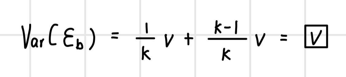 배깅을 해서 오차가 줄어들었는지 확인하기 위해 배깅의 오차의 분산을 계산한다. 이때 배깅의 오차의 평균은 0이다.