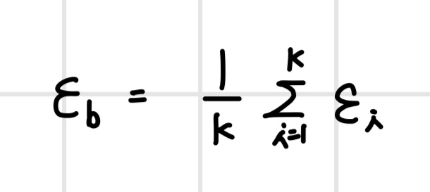 회귀 모델에서 배깅의 예측은 개별 모델의 예측값의 평균으로 계산하므로 배깅의 오차는 개별 모델 오차의 평균이 된다.