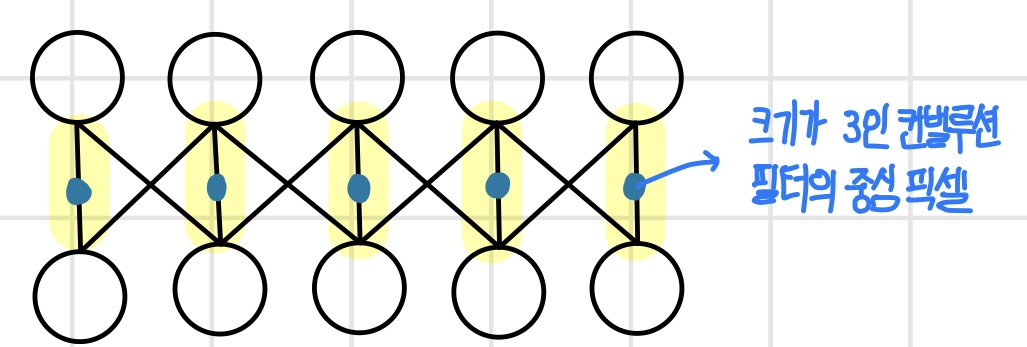 컨벌루션 연산을 하면 컨벌루션 필터가 입력 이미지 안에서만 슬라이딩하기 때문에 출력 이미지의 크기는 입력 이미지의 크기보다 작아질 수밖에 없다. 여기서 이미지 크기는 컨벌루션 필터의 크기 F - 1 픽셀씩 작아진다. 이로 인해 컨벌루션 연산을 계속 진행하면 어느 순간 컨벌루션 연산을 할 수 없는 크기로 변한다. 이는 이미지 크기와 컨벌루션 필터의 크기에 따라 컨벌루션 연산 횟수가 제한됨을 의미한다. 이러한 경우 컨벌루션 계층 수가 제한되기 때문에 원하는 대로 신경망을 깊게 만들 수 없다. 따라서 컨벌루션 연산 이후에도 이미지 크기를 유지하기 위해 이미지에 픽셀을 추가해서 크기를 늘려줘야 하는데, 이를 `패딩(padding)`이라고 한다.
