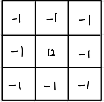 샤프닝은 이미지를 선명하게 만드는 연산이다. 선명한 윤곽을 갖는 이미지를 만들기 위해 2차 미분을 계산하는 `라플라스 필터(Laplace filter)`를 사용한다. 라플라스 필터는 좌우 또는 상하 픽셀값이 변화량에 대한 변화량을 계산하도록 설계한다. 이처럼 이미지 처리를 할 때는 연산의 목적에 맞게 컨벌루션 필터를 설계해야 한다.