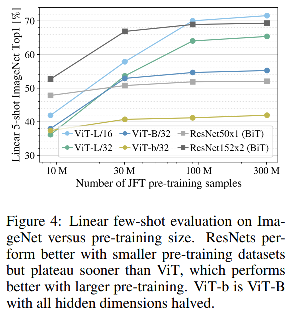 - ViT는 동일한 성능을 달성하기 위해 약 2~4배 적은 컴퓨팅 파워를 사용
